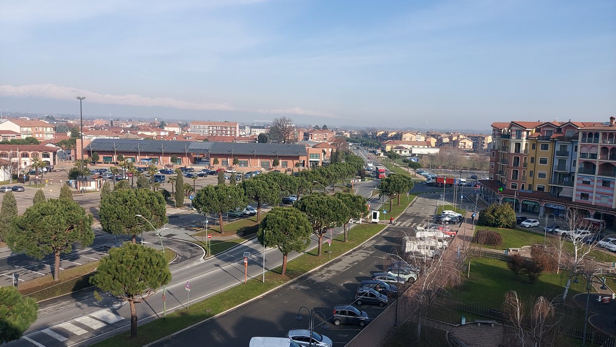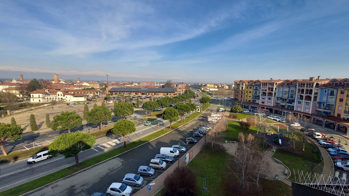 ULTIMO PIANO PANORAMICO. In posizione centrale e ben servita, a pochi passi dalla piazza del mercato e nelle immediate vicinanze di negozi, aree verdi, scuole e tangenziale, proponiamo in una palazzina di recente costruzione del 2007, al quarto e ultimo piano con ascensore, panoramico appartamento mansardato di ampia metratura composto da ingresso living su soggiorno arricchito da piacevole camino, spaziosa cucina abitabile a vista, camera, bagno, ripostiglio, 2 vivibili terrazzini e cantina.